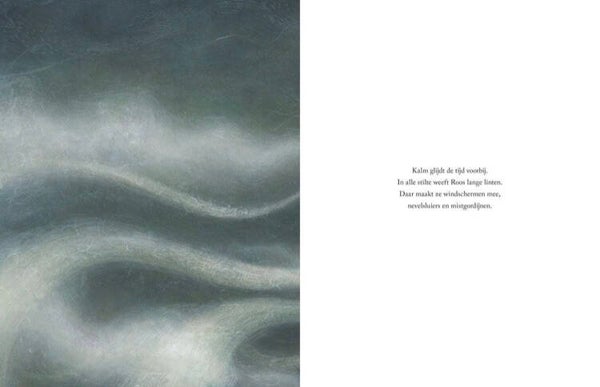Roos heeft een bijzondere gave. Ze vangt de nevel in haar netten en weeft felbegeerde stoffen. Hiermee kunnen de mensen lastige ervaringen en moeilijke gevoelens verhullen. Zo raakt het hele land door een dichte mist bedekt … Maar dan krijgt Roos een brief van ver weg, een brief van haar vader. En opeens loopt haar hart vol zonneschijn.