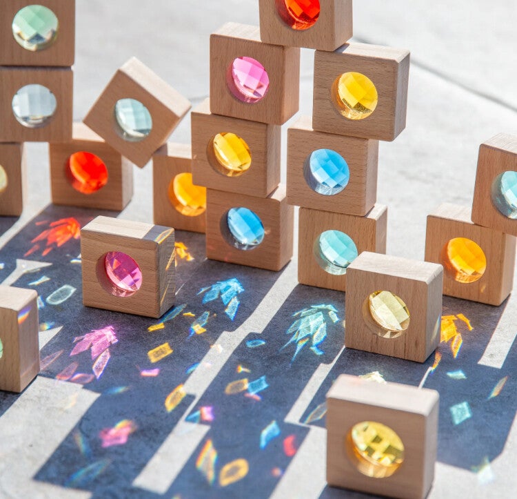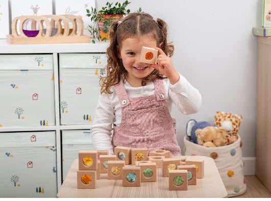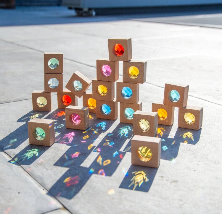 Deze prachtige beukenhouten blokken met 10 levendige kleurrijke kaleidoscoopblokken. Ze zijn fascinerend om doorheen te kijken en zijn perfect voor zintuiglijk spel en kleurherkenning. Het stevige ontwerp is ideaal voor kleine handjes, waardoor ze ideaal zijn voor stapel- en sorteeractiviteiten. Wanneer ze met licht worden verkend, creëren ze intrigerende patronen, die discussies over reflecties op gang brengen. Deze blokken zijn perfect voor fantasierijk spel, waardoor kinderen ramen, deuren, kleurrijke decoraties of iets anders kunnen maken dat hun creativiteit inspireert. De set bevat ook een tickit-tas met trekkoord voor handige opslag. Dit tickit product is gemaakt van FSC® gecertificeerd hout*.